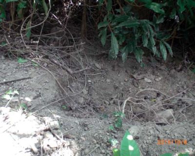 今回、イノシシが掘った後を発見しました。