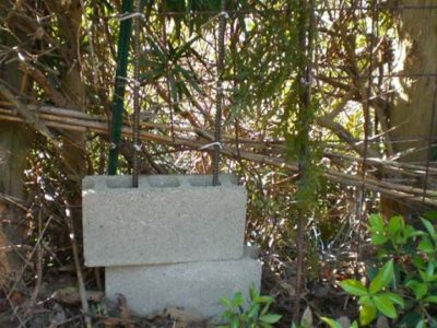 メッシュが無かったために、下の写真のようにブロックと鉄筋で補修してみました。