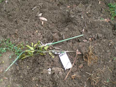 イノシシに抜かれた石地の苗木、とりあえず再植する