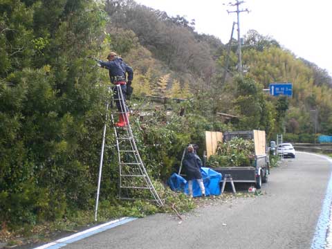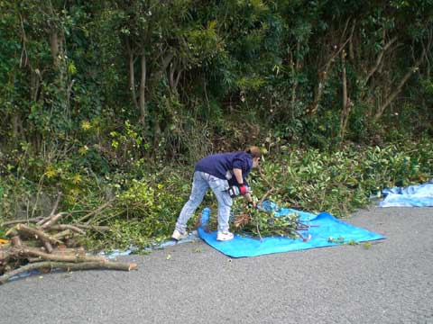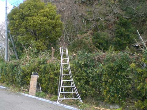長男親子と、長女夫婦、それと私の5人で修復にあたりましたが、私は、手が完治していないので、剪定を主に行いました。