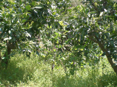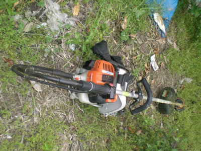 写真中央の雑草は茎が木のように硬く、これを刈ろうとするとリールがすぐに切れてしまいます。